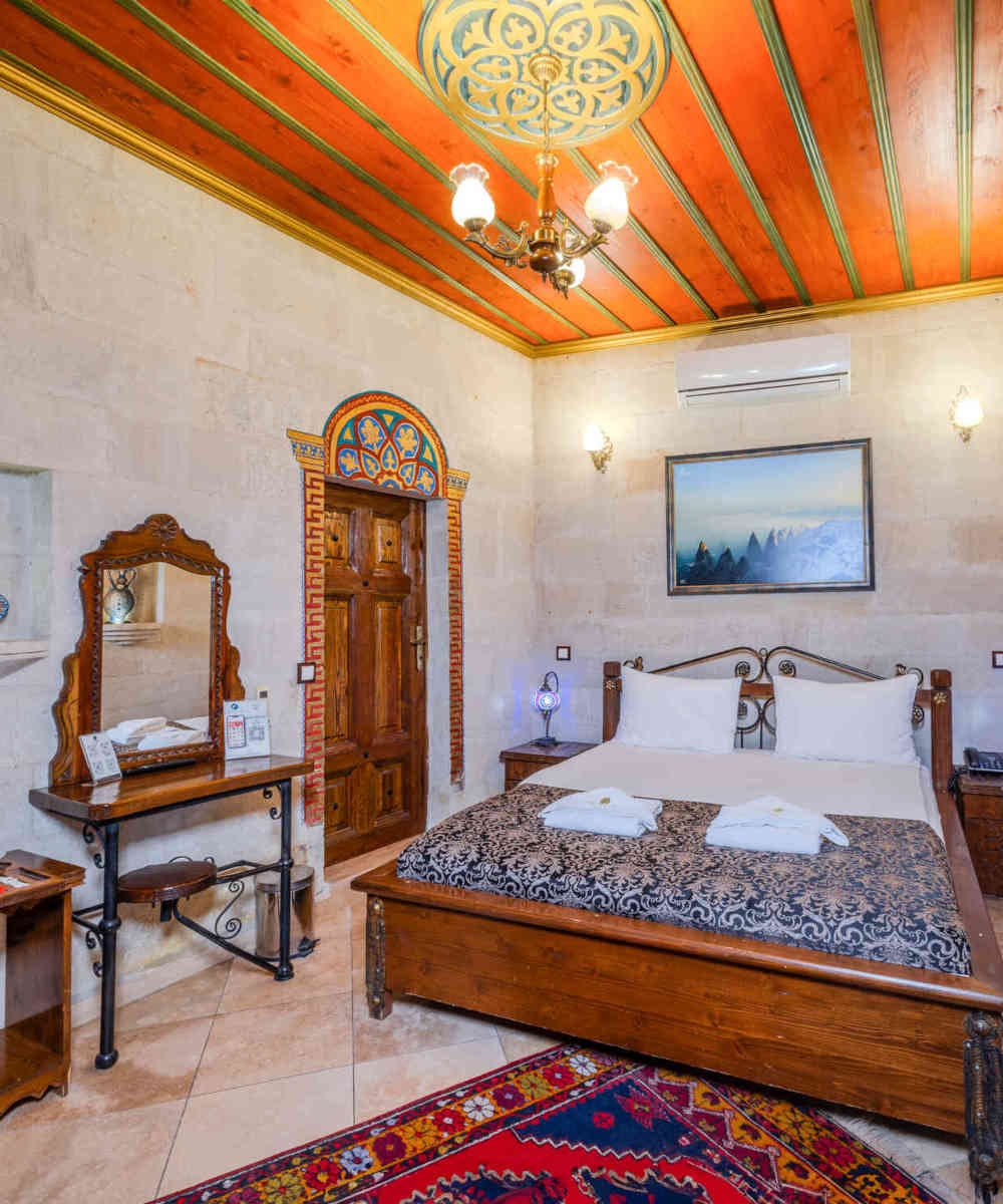 Imagine a magical escape in the heart of Cappadocia, where nature's wonders meet luxurious comfort. From our unique cave-style rooms to our serene outdoor terraces, Cappadocia Cave Land offers an unparalleled experience. In this extraordinary retreat, every detail has been thoughtfully crafted. Our spacious suites blend traditional charm with modern luxury, providing the perfect environment for relaxation and exploration. Whether you're gazing at the stunning fairy chimneys or enjoying the tranquility of your room, every moment at Cappadocia Cave Land is a celebration of comfort and elegance.